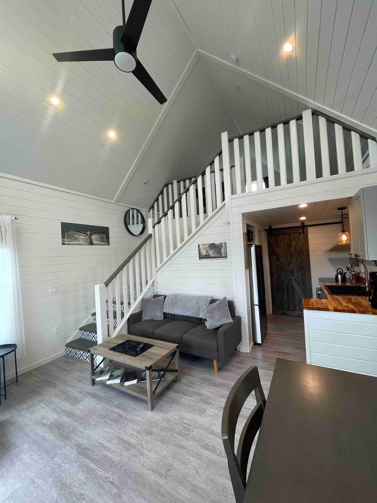 Welcome to Sunrise Cabins the loft, steps from the beach. Covered deck to shelter from the Wild West coast weather during Storm watching season Sept- through to spring. Bring your rod and fish salmon Sept and Oct in front of the cabin. Walk the beach or jump on the trail around the spit directly across the road. Have a wonderful bite to eat or play a round at the golf at the Willows course next door. Check out the visitor info centre and bistro at the airport. Groceries available everyday