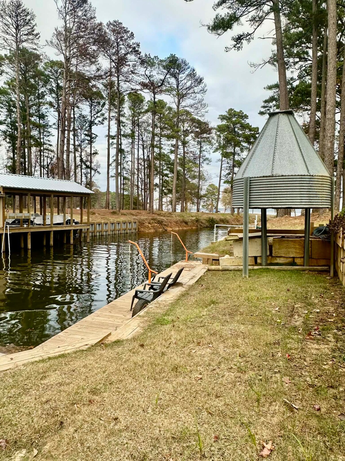 Family-friendly, Lakefront, 4-Bedroom home with a large yard and Private Boat Dock on the waters of Lake Palestine. • Private Dock – Dual boathouse, 4 Kayak Rentals Included • Large Covered Patio with an amazing view of the lake, outdoor seating and TV • Large Hot Tub & Fire Pit • Fully Equipped Kitchen – Cookware, dinnerware, and drinkware • Propane Patio Grill • Neighborhood Boat Launch • 2 Long Driveways - Ample parking • Dual Monitor Workstation - Keyboard, mouse, and Herman Miller Chair