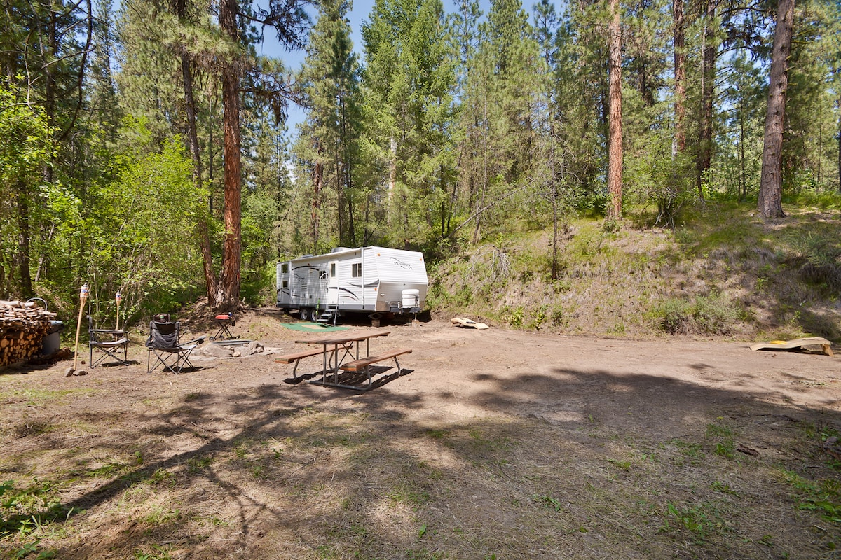 Experience the charm of a cozy, rustic tiny home nestled in our family community in Evaro, with Missoula just a quick 15-minute drive away. Take a leisurely stroll along the picturesque country road to reach the renowned Kampfire Steakhouse. Alternatively, savor your own meal prepared on the outdoor gas grill and unwind by a crackling campfire beneath a starry sky. At day's end, perhaps after a sit in our shared sauna, climb into the cozy loft bed for a restful night's sleep.