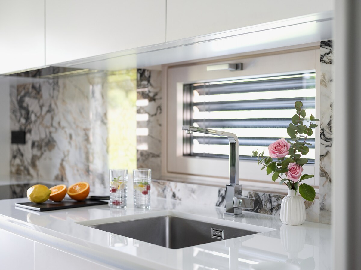 Modern 2022 tiny house in a quiet street, just a 5-min walk to Bovec center! 🏔️ ✨ Highlights: 🌿 35m² Covered Terrace: Transparent roof, built-in BBQ, outdoor sink & private garden. Perfect rain or shine! 🥩 🛏️ Sleeps 4: Cozy upstairs King bed (180x200) + brand-new, ultra-comfy sofa bed (160x200) downstairs. 🍳 Sleek Kitchen: Fully equipped (dishwasher, oven, microwave). 🚿 Spa Bathroom: Walk-in rain shower. A highly-rated, peaceful retreat for your Soča Valley adventure! 🦢