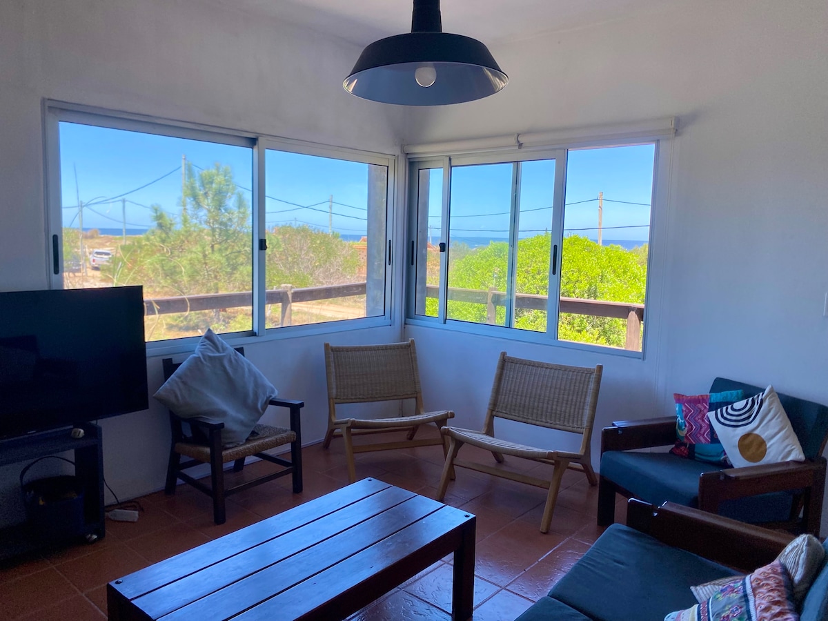 A small house with a bedroom and living room/kitchen with air conditioning/heating, at the back of a plot of land that has another house in front. The entrance to the house is independent... quiet and rugged place with wooden balcony with ocean view Perfect for children With complimentary beach chairs and umbrella and a good grill. with table and chairs for outdoor dining with thatched roof and half shade WE ARE 50 km away. from Punta del Este, 18 km from Piriápolis and 30 km From Atlantis in cannelloni