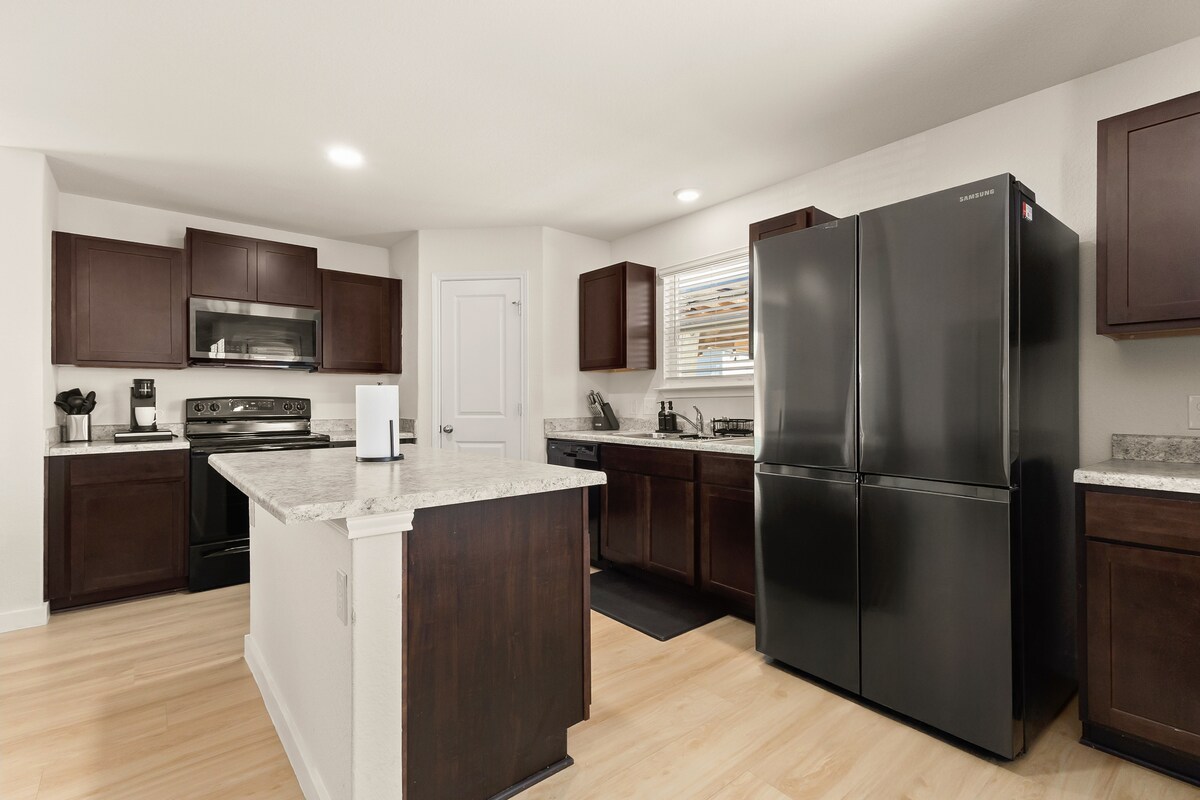 Unwind in style at this modern 4-bedroom home, perfect for a relaxing stay. Situated on a corner lot. Enjoy the convenience of fully equipped appliances, including a refrigerator, oven/stovetop, dishwasher, microwave, and washer/dryer. Stay connected with high-speed fiber internet and complimentary TV streaming, featuring over 1,000 channels and movies. The spacious yard provides plenty of room for outdoor activities.