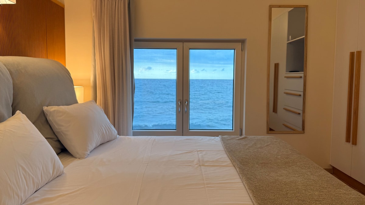 Enjoy the stunning, panoramic views of Souda Bay whilst pampering yourself in luxury. Seascape is the ultimate penthouse. Forming part of Panorama Village, a newly built complex in Kalyves Crete, Seacape’s 120m2 roof terrace makes you feel you are part of the mystical Aegean Sea. Furnished to an extremely high end, couples can enjoy year round comfort with an ultra modern heating and cooling system, calming wall art, high speed internet, modern utilities, pool and breathtaking sunrise/sunsets.