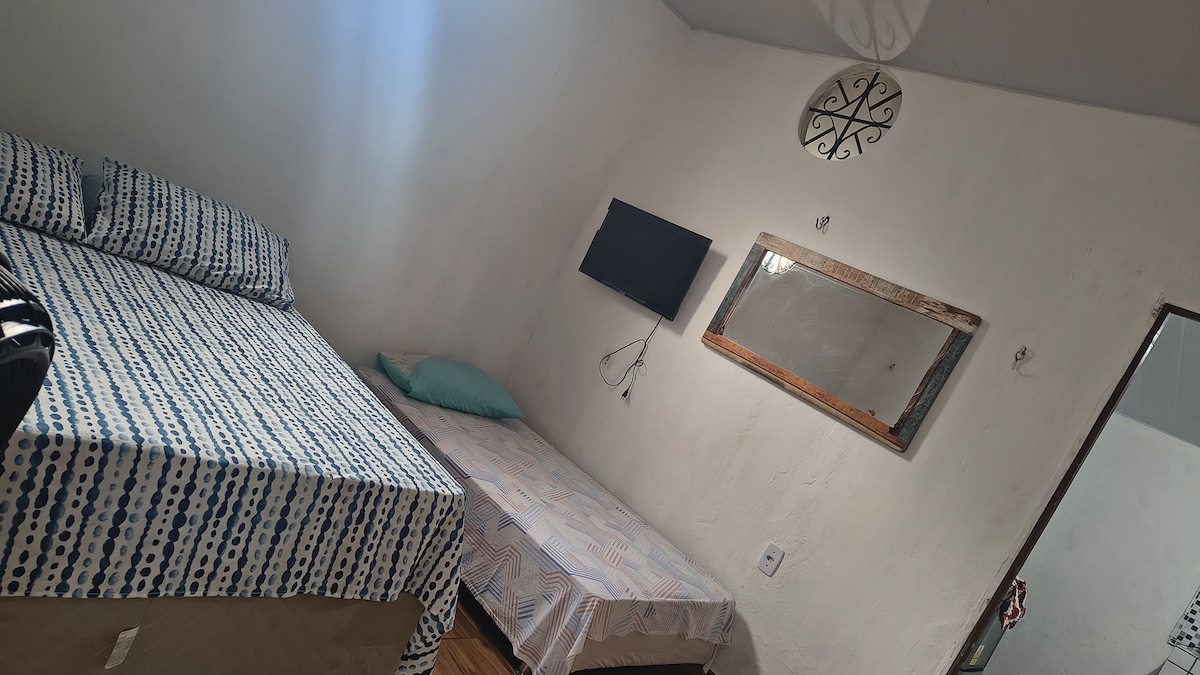 Desfrute de dias tranquilos nesta casa aconchegante, perfeita para pequenas famílias. O espaço é simples, porém confortável, camas de molas ensacadas. Tudo bem cuidado e ideal para quem busca descanso com segurança e praticidade nos deslocamentos na cidade. Acomodação com utensílios domésticos para facilitar suas refeições no próprio ambiente, oferecendo tudo o que vocês precisam para uma estadia agradável.