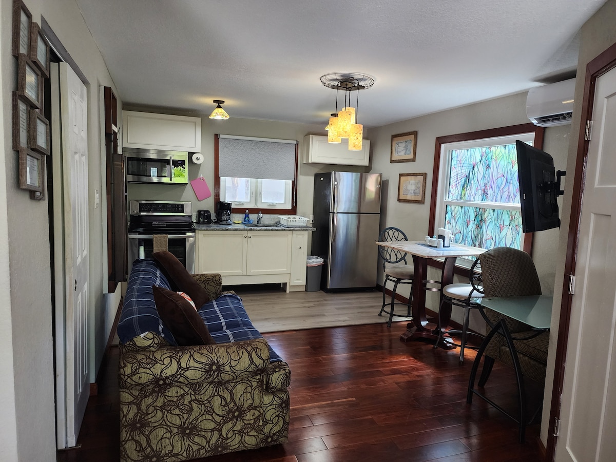 Keep it simple at this peaceful and centrally-located bungalow. Studio style bungalow only walking distance of Tampa Bay and downtown St. Petersburg. Comfy King size bed. The property is nestled in the beautiful Historic Old NE neighborhood. Only a short drive away from the beaches. Newly renovated with brand new features and updates. Great location for someone or a couple looking to explore the St. Petersburg area downtown or looking to be close to the beaches.