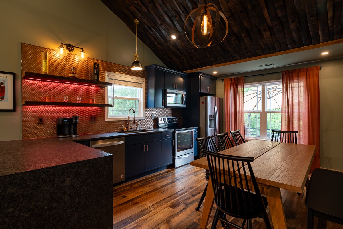 Sip, savor, and relax at this bourbon-inspired lakehouse with modern design, cozy cabin charm, and a private hot tub. Perfectly nestled near the water, this stylish retreat offers the perfect blend of relaxation and adventure. With 3 spacious bedrooms, 5 comfy beds, and 3 bathrooms, our cabin is ideal for groups looking to unwind in comfort. Enjoy cozy evenings in the hot tub or gather around the community fire pit, perfect for roasting marshmallows and stargazing.