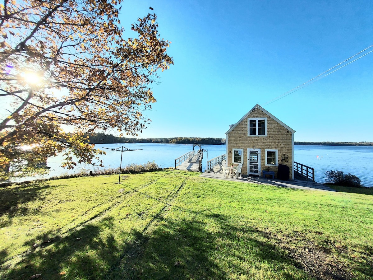 This comfortable 2 bedroom, one bathroom, A-frame pine cottage is set on its own private point with 350 feet of waterfront! Cook out on the grill, lounge on the deck or dock while taking in the wildlife on a beautiful tidal river. Watch nesting Bald Eagles and Great Blue Herons fishing! There is plenty of sight-seeing in this picturesque area. Rockland is just 10-minutes away where you can enjoy shopping, restaurants, museums, galleries, lighthouses and festivals.