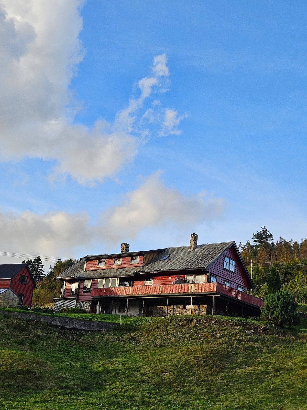 The micro house is located in peaceful and scenic surroundings in Solbakken farmyard on Os. In front of the house is Gallery Solbakkestova with its associated sculpture garden that is always open to the public. Around the house goats graze, and you have a view of some free-range chickens, and some alpacas on the other side of the road. The house has terraces on both sides, where it is lovely to sit and take in the surroundings and feel the peace. There are also great hiking trails nearby.