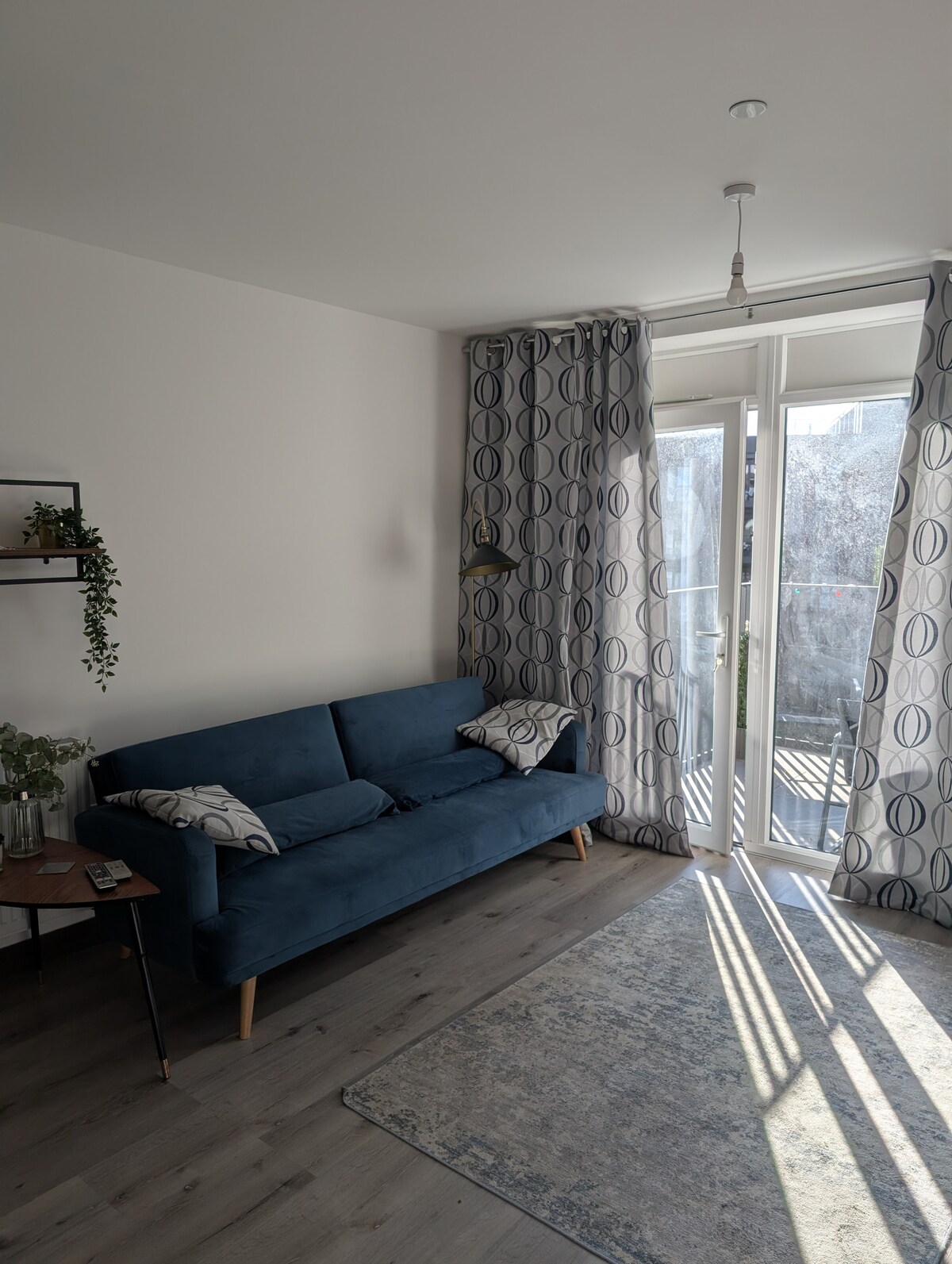 This modern flat is a 5 min walk to the Hayes & Harlington Elizabeth Line station, just 3 stops (25 minutes) to Central London. Secure, quiet, with its own private balcony facing peaceful internal gardens, with access to gardens and roof terrace. The living room has a TV and sofa bed and leads to an open-plan kitchen/dining area with a fridge, freezer, hob, dishwasher, and washing machine. Bedroom with double bed and wardrobe, separate bathroom with bath/rain shower and WC. NO YOUNG KIDS