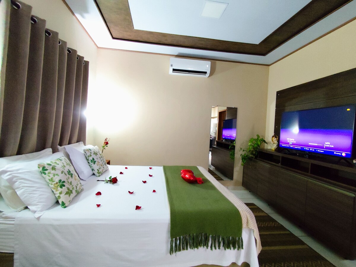 Discover the incredible feeling of being immersed in the peace and warmth of living nature, a few kilometers from Goiânia. I offer 4,000 meters of lots of light, greenery, birds and the unique simplicity of the countryside. The ranch is airy and cozy. Although newly renovated, it already has a lot of personality. From there, we see an unforgettable and breathtaking sunset. The house has two bedrooms, two bathrooms, a living room, kitchen, Wi-Fi and a relaxing Jacuzzi. Close to the tourism and beauty of Santa Branca farm, an ideal place to be happy.