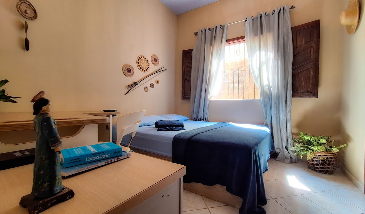 Spacious house in Alter do Chão, with many terraces, surrounded by greenery, and easy access to the village center. Upscale, quiet neighborhood, opposite the Belo Alter hotel. Many monkeys roam near the house. Cool and airy place, next to the forest reserve, at the end of a paved street. Two-minute access to Lago Verde beach. A quiet beach, ideal for water sports and excursions. 2 people in 1 bedroom = R$360.00 2 people in 2 bedrooms = R$460.00 3 people in 2 bedrooms = R$510.00