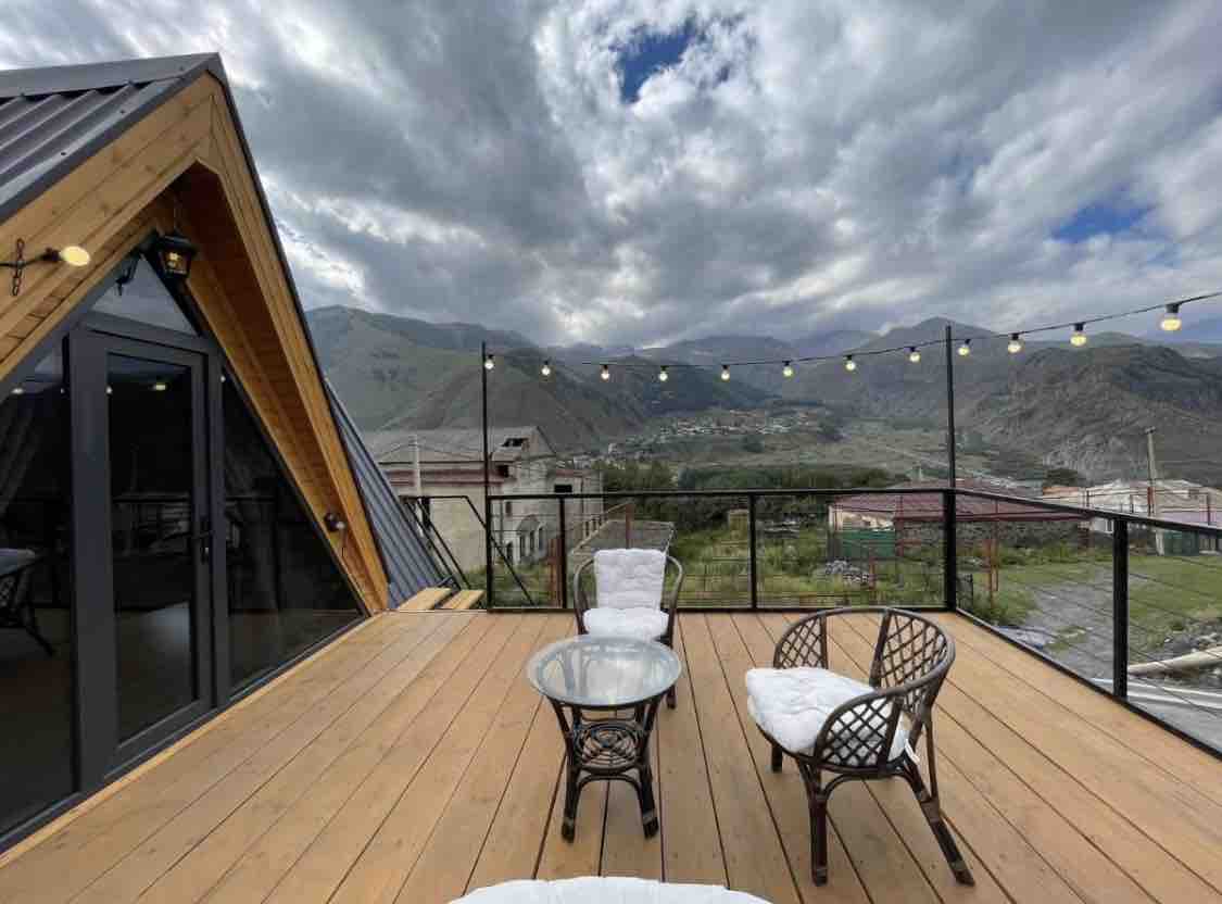 Peaceful A-frame cabin in Kazbegi - Stepantsminda by the river, surrounded by mountains. Enjoy fresh air, beautiful views, and total tranquility. Clean, cozy, and fully equipped. Perfect for couples, friends, or families. Close to hiking and waterfalls. Hosted by a Superhost for a smooth stay.