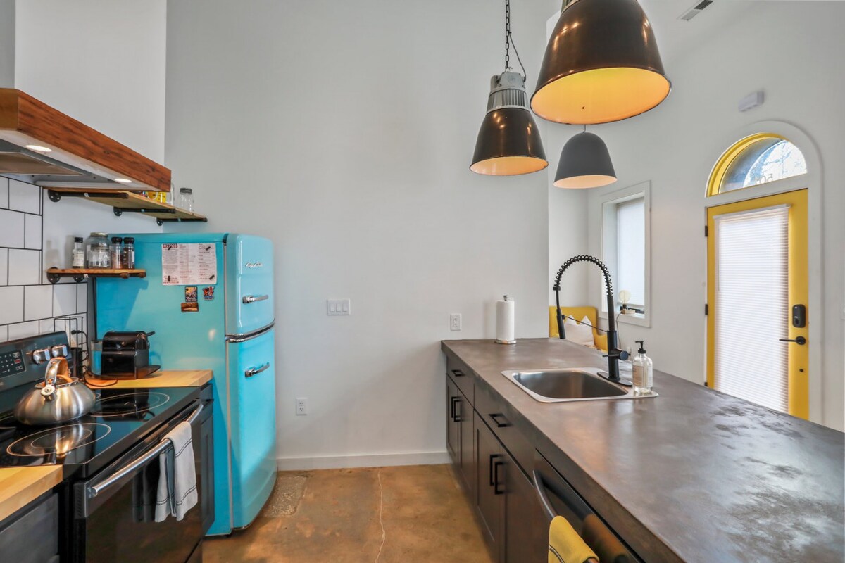 1920s Refurbished Gas Station with hot tub repurposed into a beautiful luxury apartment. Private parking/EV charging, private hot tub, full kitchen, custom rain shower, high speed wifi and smart TV. There is plenty of light with frosted garaged doors, all modern appliances, laundry and coffee nook in an open living design. Be a part of Old Town Winchester in this unique getaway, walking distance to shops, downtown eateries and our neighborhood Pizzoco Pizza Parlor one block away. Pets welcome!