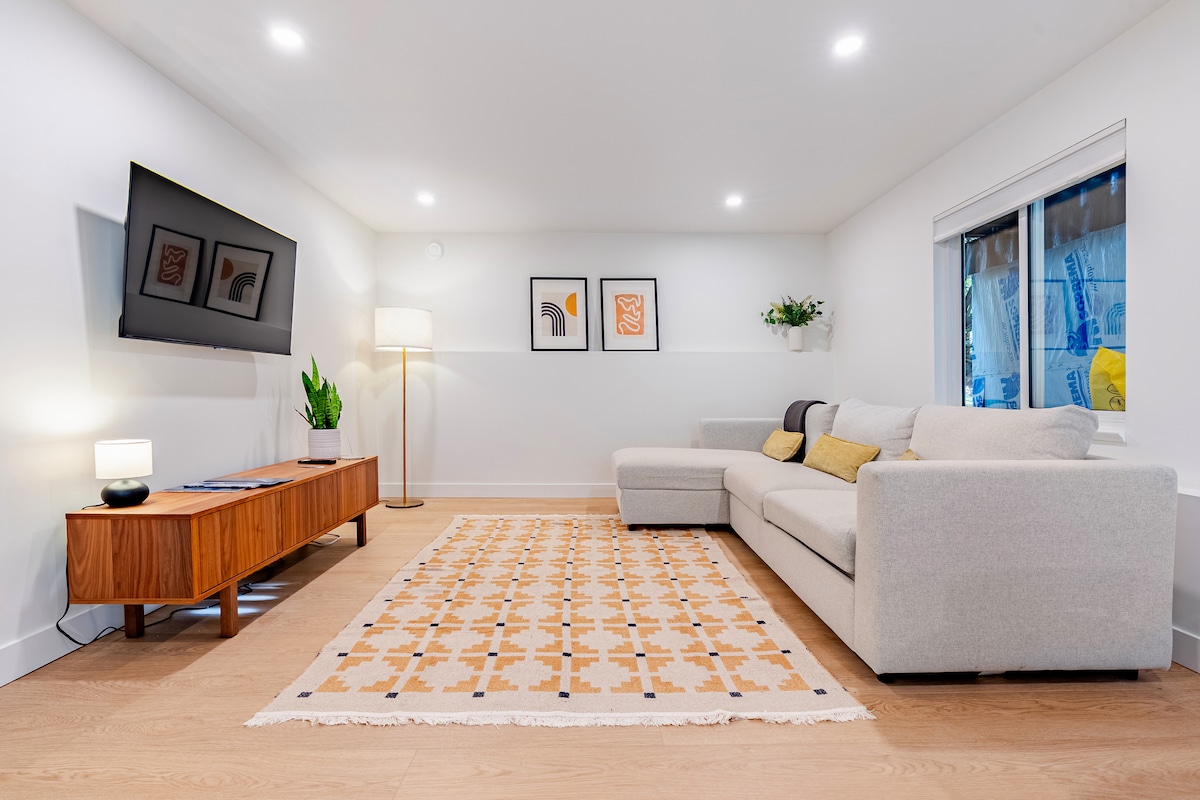 -Next to Jericho beach and 4km of dreamy seaside walk -Brand new, modern, quiet, spacious -Private entrance and own patio -Self-check in with access code -Private parking spot -Big bedroom with comfortable queen size bed -Office desk -Modern bathroom with bathtub and rain shower -Kitchen with all appliances -Great for movie nights (big corner sofa, 69" tv, Roku for streaming) -Lovely seaside neighbourhood with great cafes and restaurants