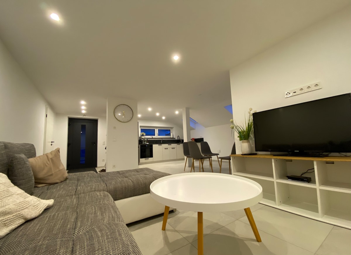 ☆ WELCOME TO KUELhome - FEELS LIKE HOME ☆ This modern furnished apartment is located in Michaelsbuch. The historic center of Deggendorf can be reached by car from the accommodation in a few minutes and offers many facilities. → 24h check-in → Comfortable king size beds in 3 bedrooms. → Shower cabin and bathtub → Nespresso coffee machine → Kitchen with full equipment → Large living room with 55 inch smart TV → wifi → Private parking space → Washer dryer → Garden sharing