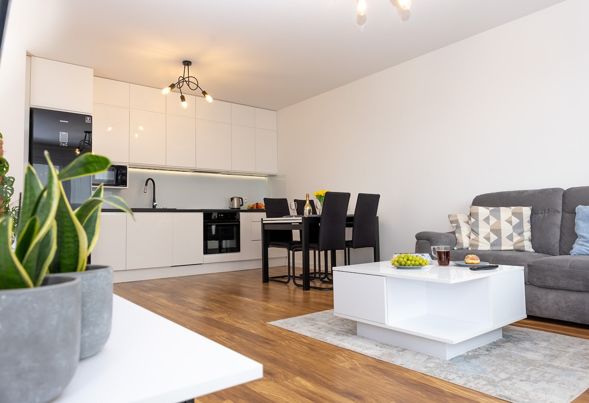 Enjoy a peaceful and stylish stay at this centrally-located place. A newly built, beautifully furnished apartment, perfect for a quiet stay in the heart of Gdańsk. Located on the greenest side of the city center, right next to Góra Gradowa. Although historical and cultural sights, shops, and restaurants are only a 10-15 min walk away, the area feels peaceful and secluded. The place offers a unique, cozy, and very comfortable design, perfect for a couple and a weekend escape.