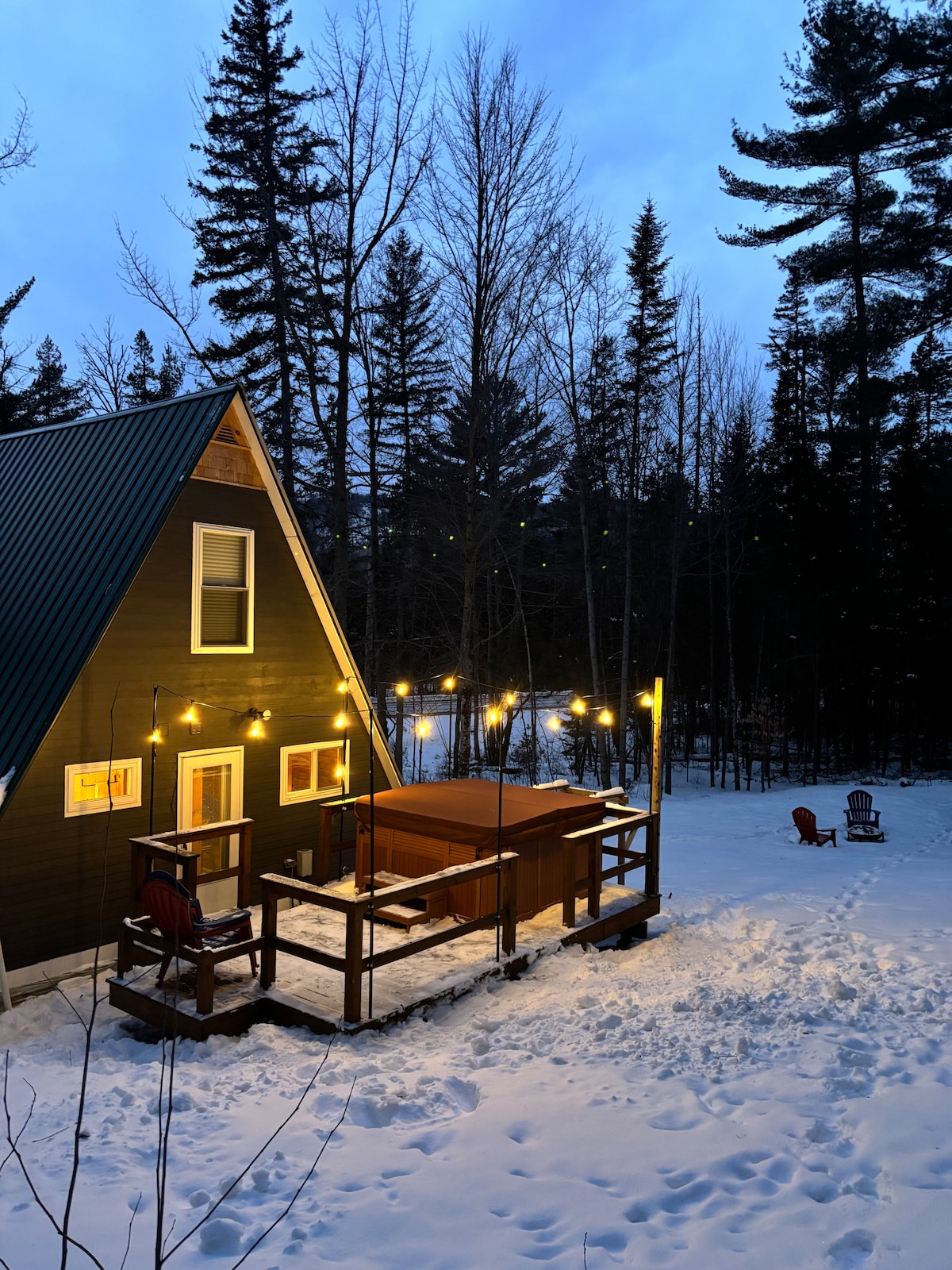 Cozy camp located in the heart of the Western Maine Mountains. Enjoy relaxing in the hot tub after a long day of skiing, snowmobiling or whatever sport your into. Snowmobile and ATV right from the cabin. Short drive to Sugarloaf Mountain/Bigelow Mountains Hiking Trails/Local Restaurants/Kayaks available on request 2 days before arrival. Outdoor firepit & lawn furniture. Outdoor patio table. Corn hole & other outside games.