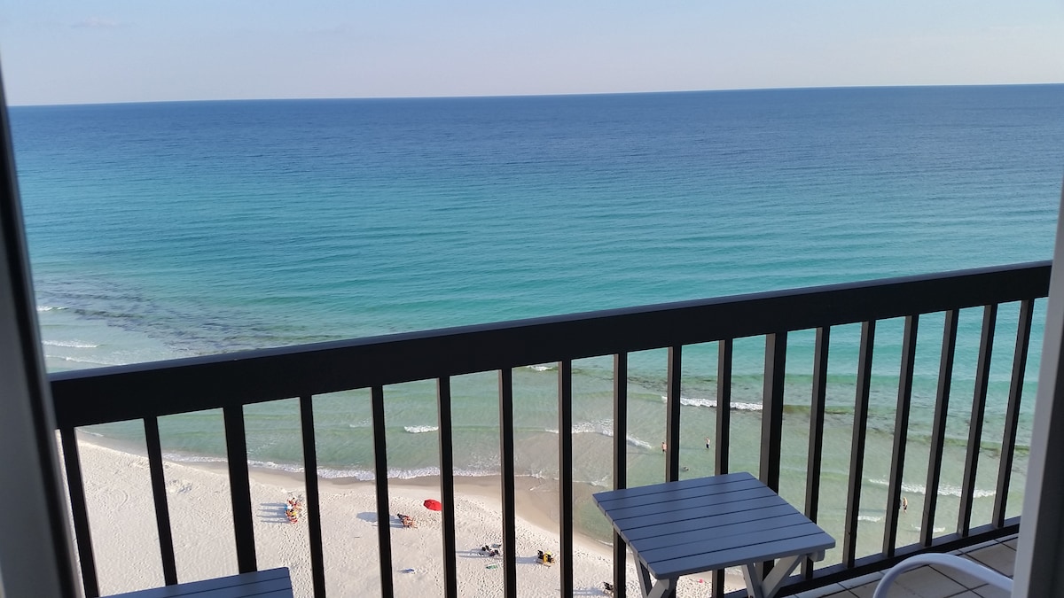 Follow the sun to this beautifully renovated oceanfront studio—where white sand, warm breezes, and crystal blue waters await. • Free beach chairs and umbrella included with your stay (March 15 – October 31). • Relax on your private balcony overlooking one of the most breathtaking beaches in the world. • Centrally located – park your car and forget about it! Walk to top-rated restaurants, Pier Park, and many local favorites.