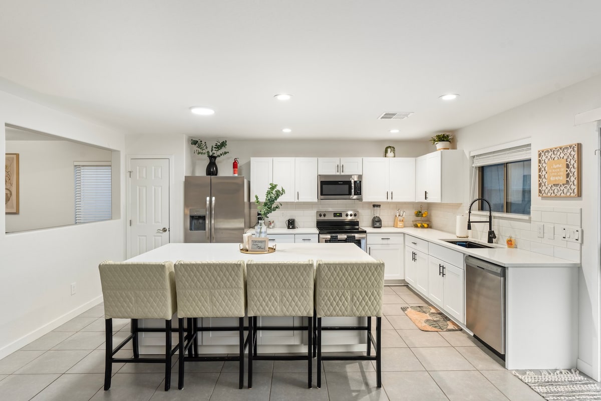 Enjoy a stylish stay in Surprise, Arizona, perfectly located near spring training stadiums, major freeways, picnic parks, and volleyball areas. This modern Airbnb offers a comfortable, well-designed space ideal for vacations, sports travel, or work trips. Relax in contemporary living areas, enjoy convenient access to local attractions, and explore the greater Phoenix area with ease. A perfect blend of comfort, location, and modern amenities for an stress-free stay. NO PET NO SMOKE HOME