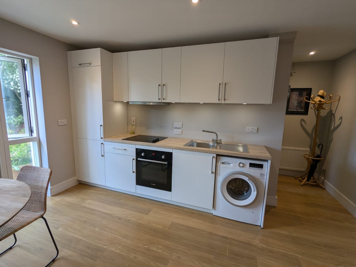 This bright, self-contained apartment is within to a family home, but the access between the two is completely blocked off, providing a fully private entrance and a standalone living space. The only shared area is the driveway, ensuring your stay feels like a separate home. 5-minute walk to the stunning beaches, Sutton DART station, the airport bus, and local bus stops. Pet Friendly! We warmly welcome pets. Our own friendly animals live in the adjoining family home.