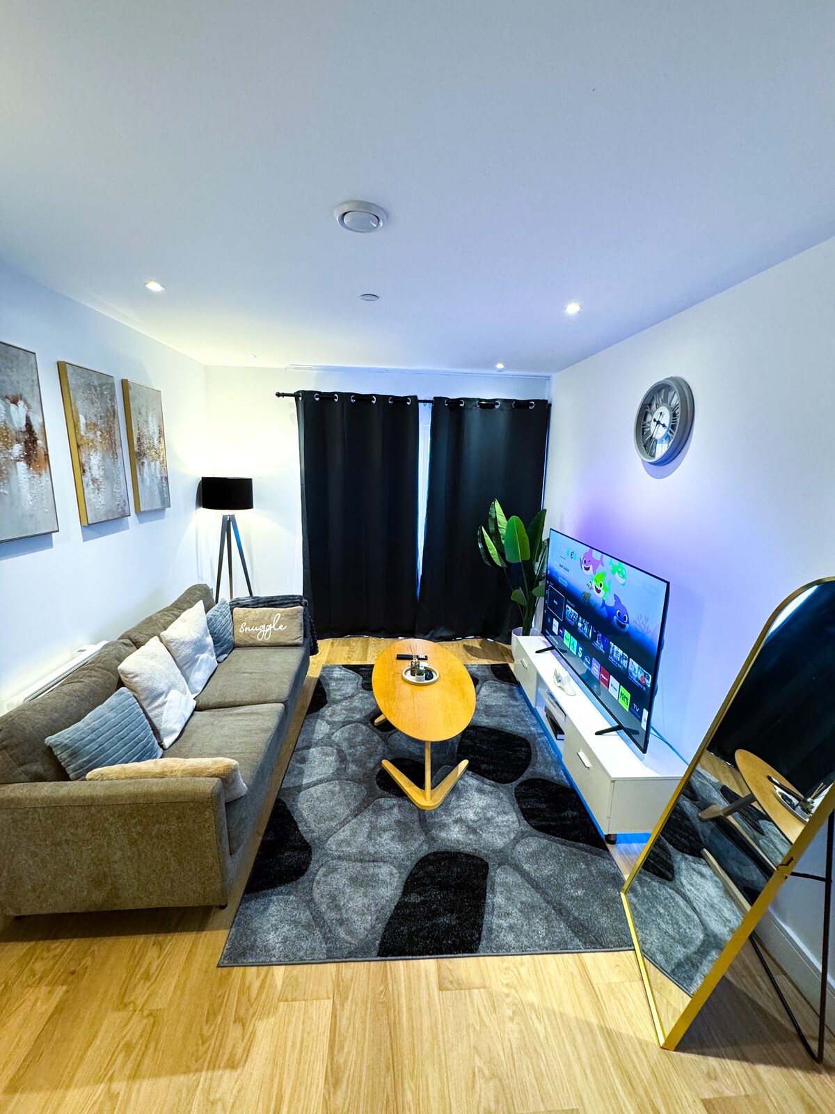 Discover your stylish, modern flat near Birmingham! This newly built 1-bedroom flat is perfect for couples or professionals. Relax in chic velvet chairs, enjoy a smart TV in the living area, and stay connected with fast Wi-Fi. Located just a 25-minute journey from the city centre and a short walk to the West Bromwich Albion football ground. Comfortably fits 2 guests.