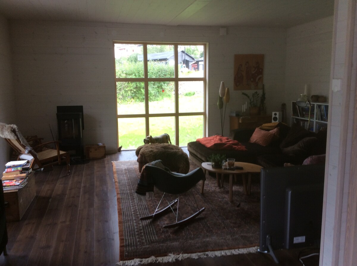 Magical lodge in a quiet location near hiking trails and with sliding distance to skiing in both slopes and trails. After a day up in the mountains, you can come in to the sauna, cuddle up on the sofa by the fireplace or enjoy a dinner around the large dining table in front of the glass walls that frame the mountain environment like a large painting. The lodge is located near Storhogna M where there is a restaurant, ski rental, self-service grocery store and bowling. 2 km away is the mountain hotel with spa and more restaurants.