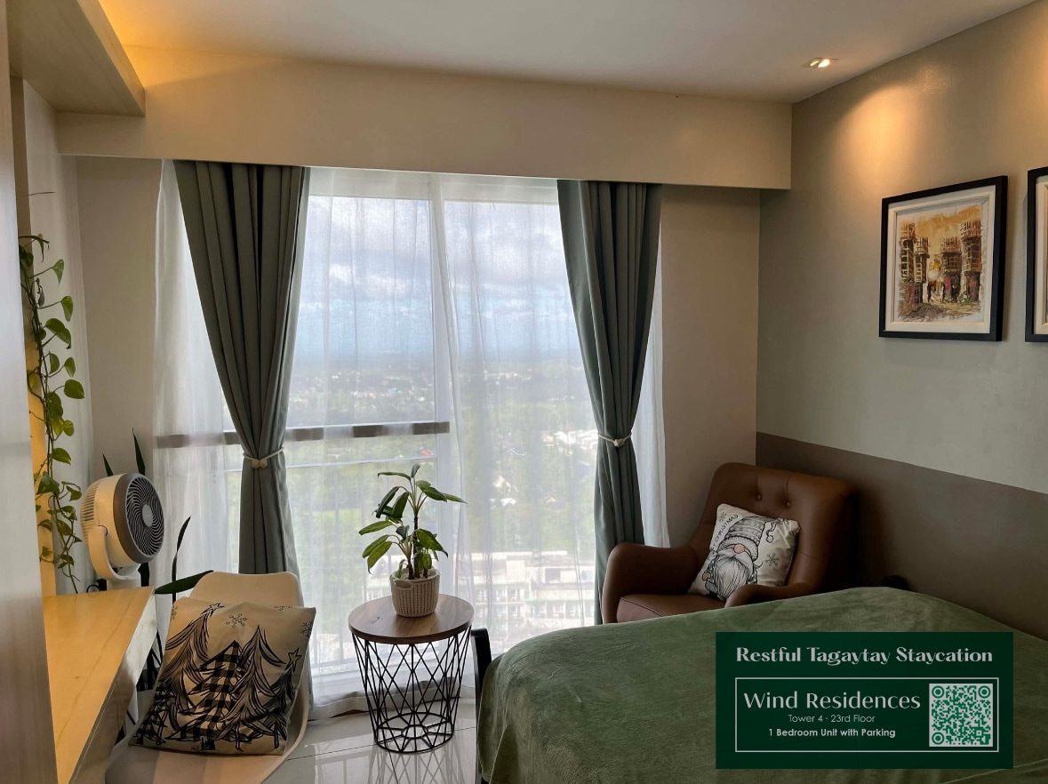 Satisfy your wanderlust with a visit to Wind Residences in Tagaytay, where the cool breeze enhances your experience. Unwind and take in the breathtaking views of Taal Lake from our cozy and spacious accommodation. Located in the center of Tagaytay city, our inviting space is ideal for both couples and groups of up to 4 guests, offering all the amenities you need for a comfortable stay