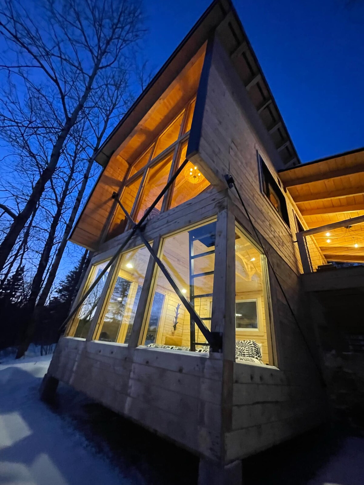 Small Scandinavian chalet for two people ideally located to enjoy the attractions of Charlevoix. It has a thermal circuit (hot tub, sauna, hammam) Very intimate and in the middle of the woods, the view overlooks the majestic river and the mountains in the distance. All the modern equipment is there and the comfort is absolute A/C and outdoor fireplace. The open concept design was designed for an immersive experience in nature: large windows, panoramic shower. Access via a private road at 500 m.