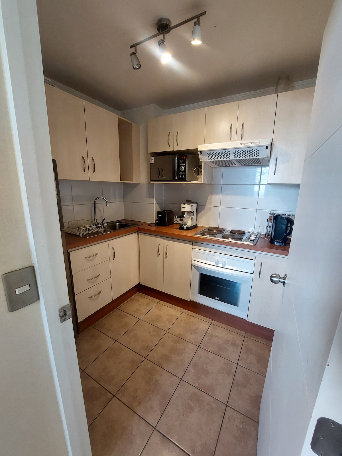 Quiet, cozy space with everything you need to rest, work and cook. Steps away from the Teletón and the University of Talca, half a block from a Copec point, close to stores; by vehicle, 5 minutes from supermarkets and 15 minutes from downtown.