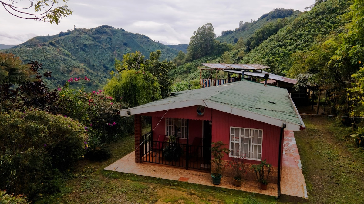 Fully equipped wooden cabin. It is a very quiet, cozy and unique space that guarantees a comfortable, relaxing stay in harmony with nature, where you can breathe clean, fresh air at a height of 2224 meters above sea level. An ideal place to enjoy with family and friends surrounded by nature. It is located near different attractions such as the tree canopy, trout fishing, coffee tours, coffee shops, restaurants, and trails, among others.