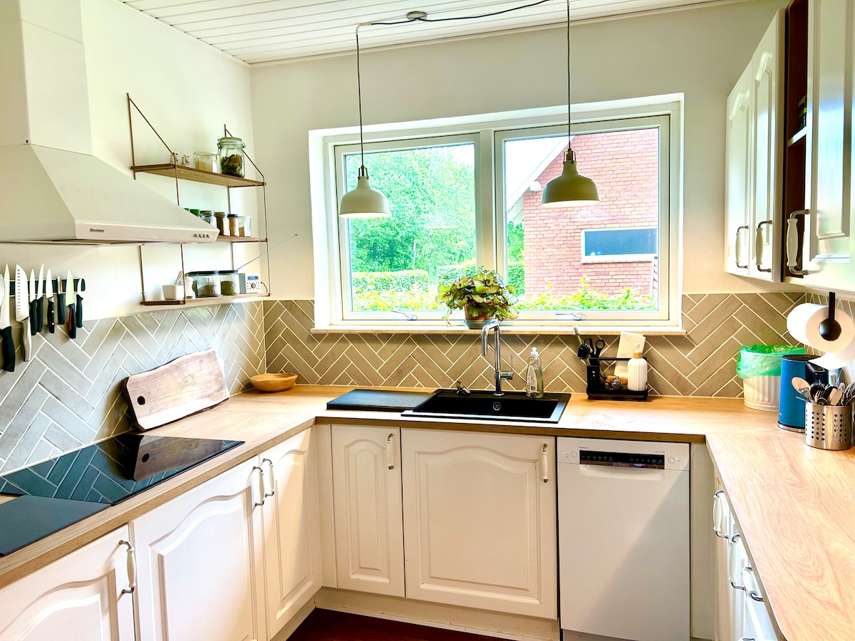 Lyst og varmt hus, 1.5 km fra Svendborg centrum. Masser af grøn areal og en god udsigt. Der er to etager og alle tre soveværelser er på 1. sal. Badeværelset er i stue etagen. Der er en sydvendt terrasse og direkte adgang til en offentlig park med legeplads. Det tager 7 minutter at gå til vandet hvor der er en badebro og omklædnings faciliteter. 5 minutters gåtur til en lille skov. Busstop 100 m. Kælderen er udlejet permanent med egen indgang dvs. at vaskemaskinen og tørretumbleren er fælles.
