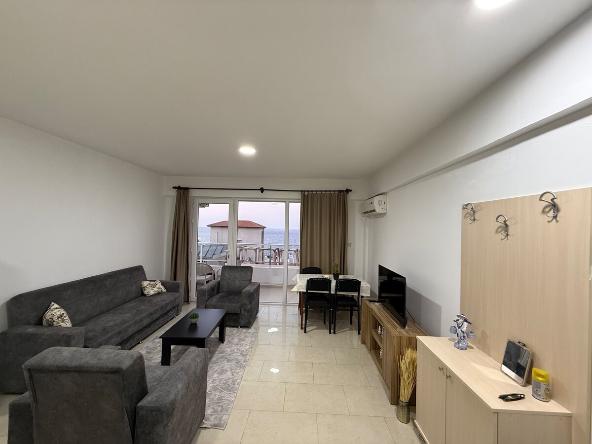 Enjoy breathtaking panoramic views of the sea, Girne Harbour, and Girne Amphitheatre right across the street. From the upper floors, the spacious living room opens fully to these views. The apartment is modern, stylish, and perfectly located within walking distance to Merit Liman, Grand Pasha, Opera, Lords Palace, Rocks, and Chamada casinos, plus markets and shops nearby.
