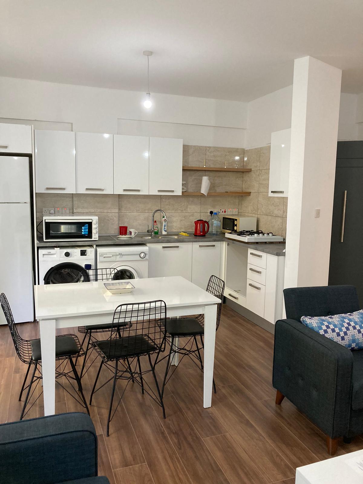 NORTH Cyprus in Kucuk Kaymakli, Lefkosia. Enjoy a stylish and luxurious experience in this exclusive, centrally located apartment. Located on the main street, on a quiet and clean street, this apartment offers the advantage of free parking. 15 minutes walking distance to Nicosia bus terminal.2+1 fully furnished new building. Only 100 metres from the supermarket. Close to all restaurants and eateries or take away services.living area, kitchen and all other rooms are air-conditioned. -comfortable.