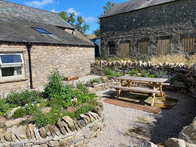 Brackenber Byre is a cosy converted outbuilding next to an old hill-top farm house. It has a private outdoor campfire area. No WiFi...sorry! Enjoy the log fire, deep bath, double bed and unique decor. The Byre is in the beautiful landscape of the Westmorland Dales and the ideal location for biking, walking, photos, watching wildlife, farm animals and chilling! The Byre sleeps 2 + pet, has a double bed, is heated by a log burner, has a tiny kitchen, a bath and WC. 1 car space right outside.
