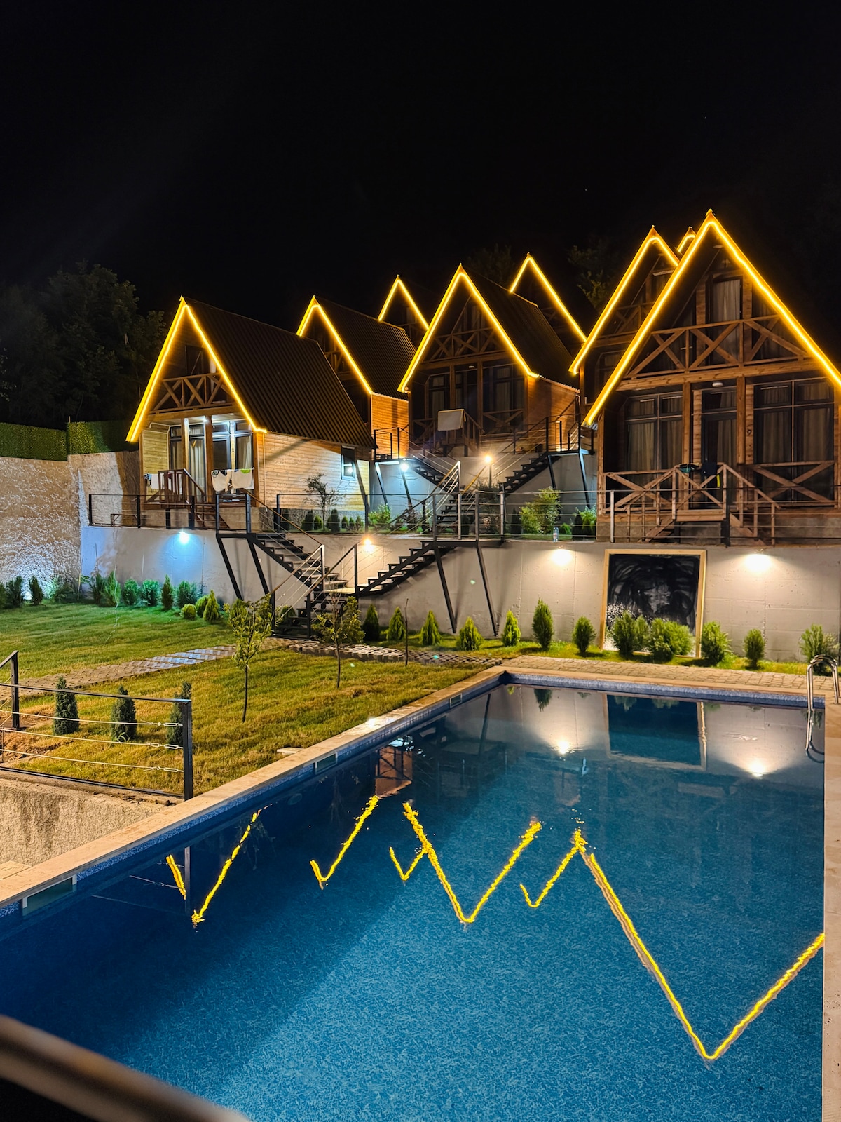 Our property is a private, gated estate in picturesque Kakheti, designed for those who value comfort, aesthetics, and unforgettable views of the majestic Caucasus Mountains. Diverse Accommodation Options We offer unique stays for every taste, blending the wild beauty of nature with modern service: Glampings: For those who want to be close to nature without sacrificing luxury. Each glamping unit features a private hot tub on its own terrace.