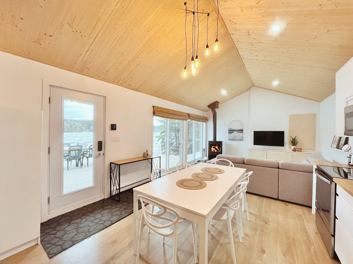 Welcome to Mini-Chalet Le Cocon, your ideal getaway by Lac Trois-Saumons! This modern and rustic cottage, completely renovated, offers comfort and charm. A place of relaxation and adventure in the heart of nature, it reveals magnificent landscapes each season. Enjoy the proximity of the lake, a private dock, an indoor wood-burning fireplace, 2 terraces (one with panoramic bird's-eye view of the lake) and a hot tub. Experience an unforgettable getaway!