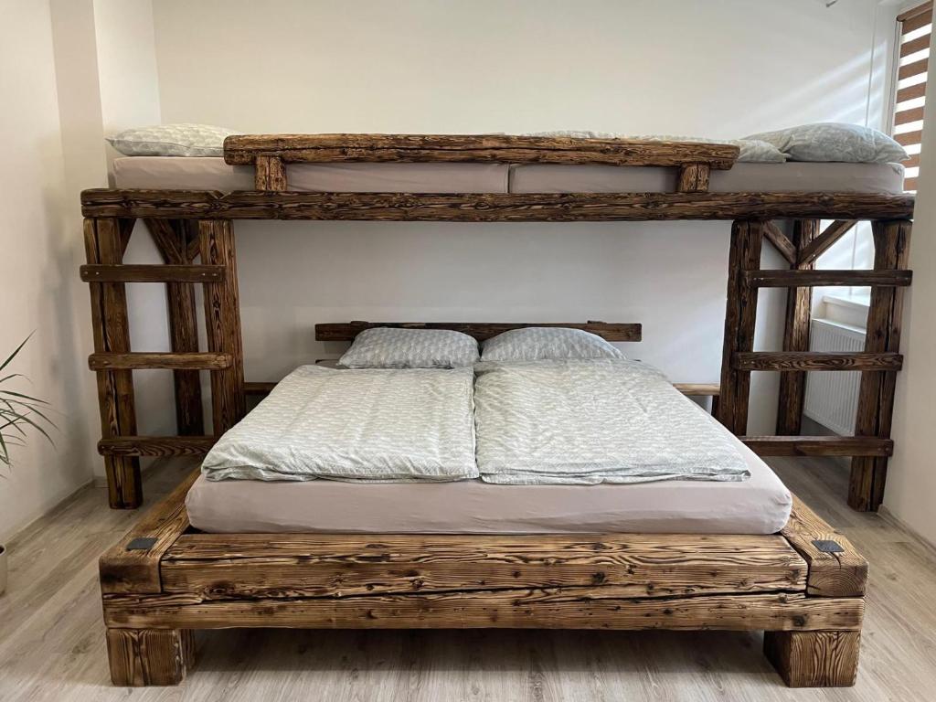 The apartment is located in a family villa in the spa part of the city. Nearby is a park, elementary school, spa, botanical garden, newly renovated swimming pool with gym and restaurant. There are plenty of restaurants and bakeries nearby. The apartment is located in the basement, it is older but fully furnished and cozy, including internet access. Parking is available on the street around the house. It consists of three living rooms. Bedroom with double bed, room with three beds and living room