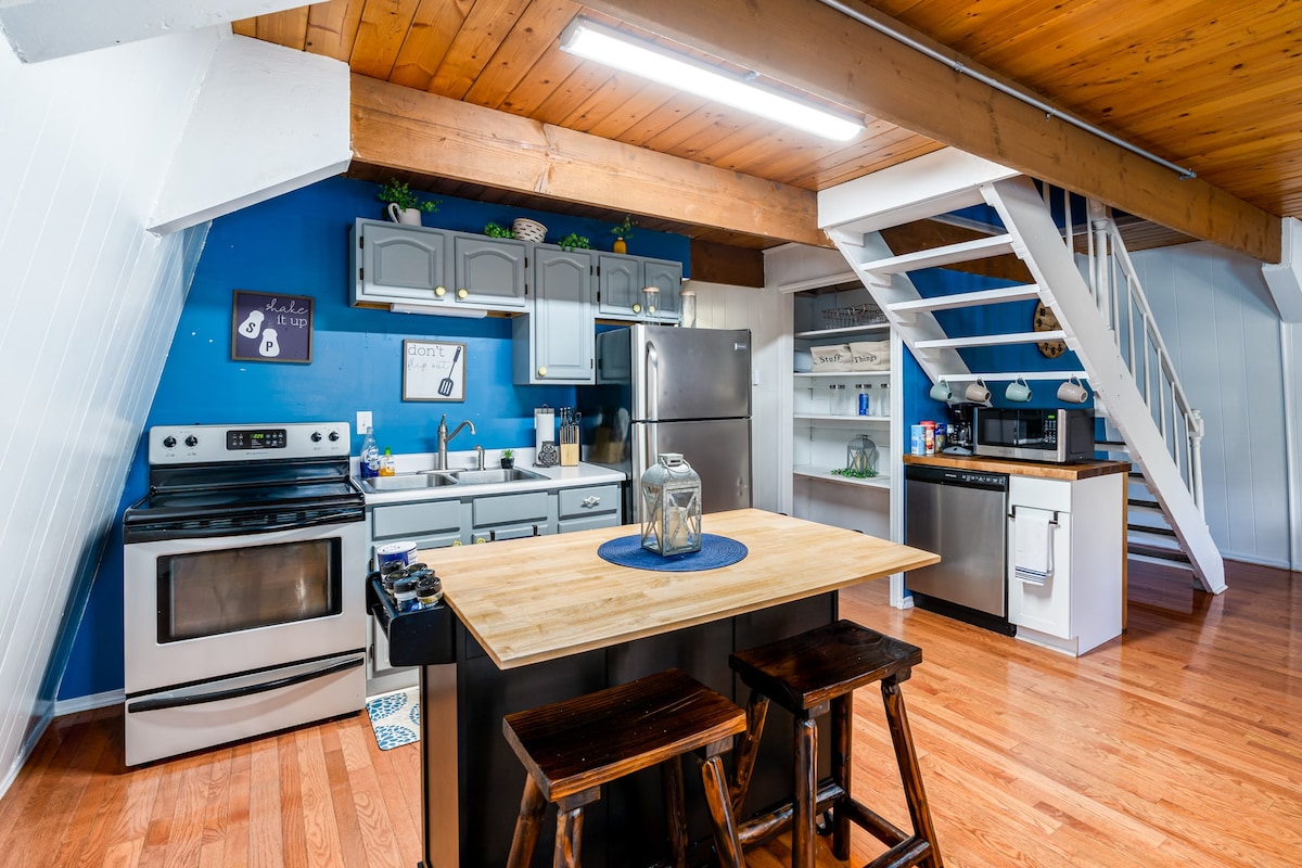 The Chalet in the Orchard was designed with Romance, Luxury, and Relaxation in Mind. The Chalet offers many first class amenties to Enjoy with your Partner. * Movie Theater with Surround Sound * Tonal Digital Home Gym * Dedicated Work Space * Fast Wifi * Sauna * Hot tub * Outdoor TV * Gas and Wood Burning Fire Pit * Private outdoor Seating * Large Soaking Bathtub * Luxury Stone tile Shower * Heated Tile Bathroom Floors * Full Kitchen * Breville Espresso Machine * King Bed