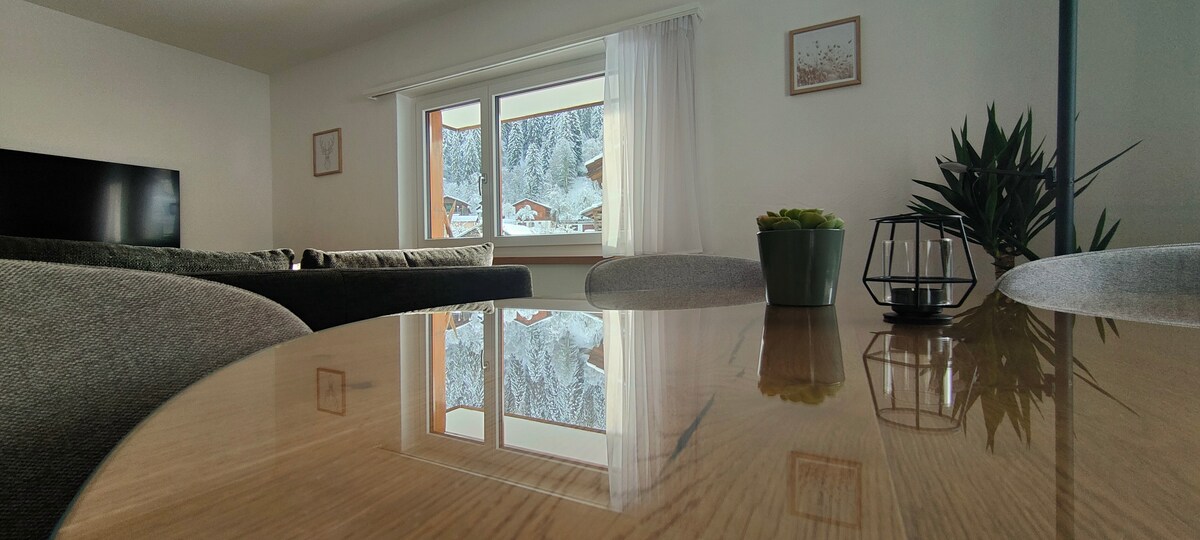 Entspanne dich in diesem einmaligen Rifugio. Im Jahre 2020 total sanierte 2 1/2- Zimmerwohnung, deren Interior Design komplett neu gestaltet wurde. Als Loft mit edelsten Materialien (Valser Granit, Schlossparkett, viel Altholz, freistehende Wanne, Eisenkamin auf zwei Seiten geöffnet, Designarmaturen) ausgebaut. Mit geschütztem Gartensitzplatz und Garten. Sonnige, ruhige Lage. Eigener Hauseingang, Sauna im Nebengebäude. Ski in, ski out oder Skibus in drei Minuten erreichbar.