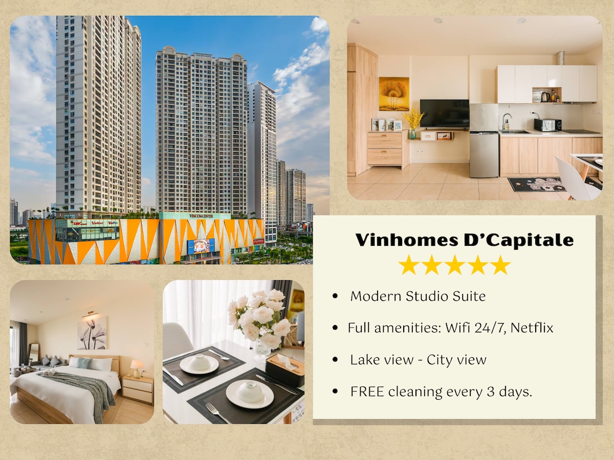 - This is a chain of modern apartments located in Hanoi's luxurious apartment complexes. Vinhomes D'Capitale one of the best place to live, each apartment is tastefully decorated, sparkling clean and has a great city view, lake view from the best floors. We offer perfect accommodation for couples, families or single travelers. - This brand new apartment has 3 queen-sized bed, 2 private bathroom, living-room with comfy sofa for you relaxing with a smart TV 60 inch.