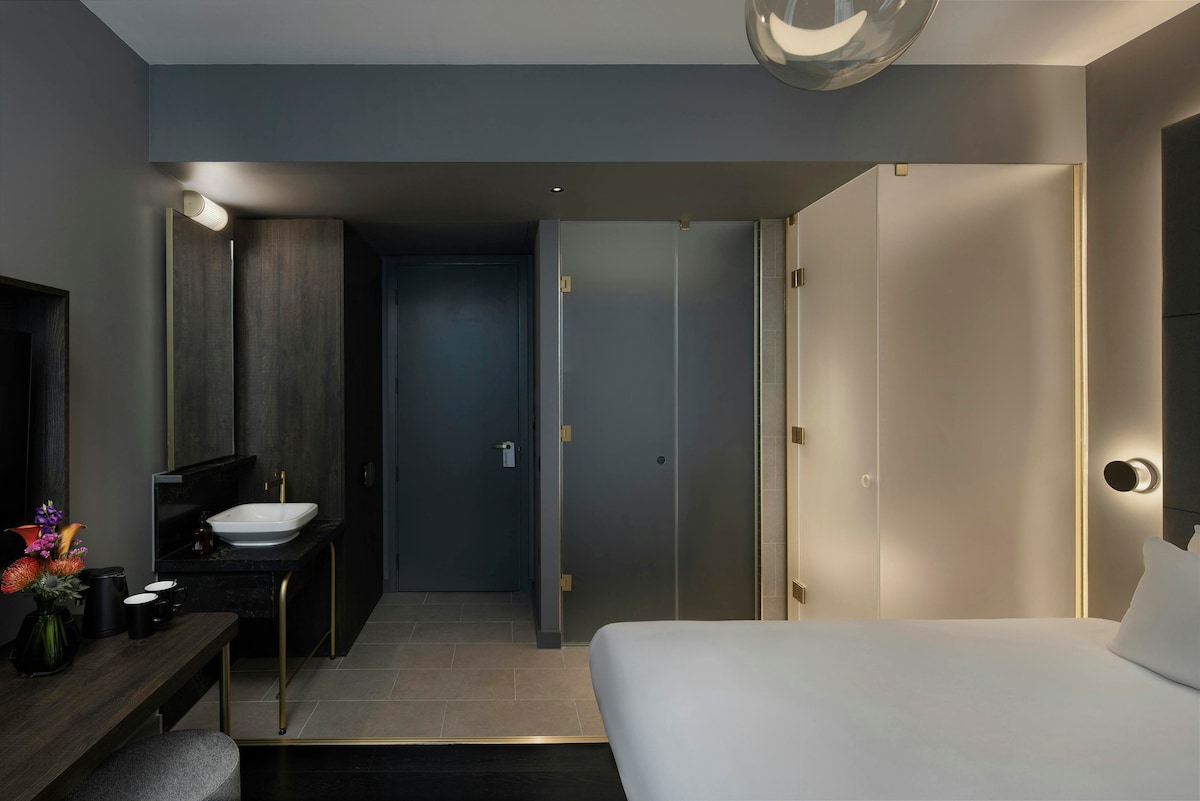 Charming and compact, our Nest rooms are ideal for a short solo stay (unless you're keen to snuggle up). The 160cm-wide bed is extra-long and has luxurious oversize bedding. Just so you know, some Nest rooms at Lucy don't have a wardrobe. You'll have air-conditioning, a nice shower , hair dryer and flatscreen. And most likely, you've come for the location (and potentially our bar and delicious snack menu)