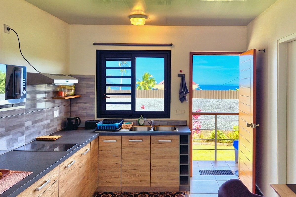 Bienvenue, Atiha Blue Lodge peut accueillir 2 adultes + 1 enfant. Le lodge est idéalement situé en bord de mer. Sa large terrasse offre une vue magnifique sur la paisible baie d'Atiha et donne un accès direct à une petite plage de sable gris: kayak ou surf juste en face. Il comporte: chambre principale vue mer, 2ème chambre mezzanine, salle d'eau moderne, kitchenette équipée, grande terrasse avec table à manger, salon de jardin et transats. Kayak, barbecue et vélos sur demande. A bientôt