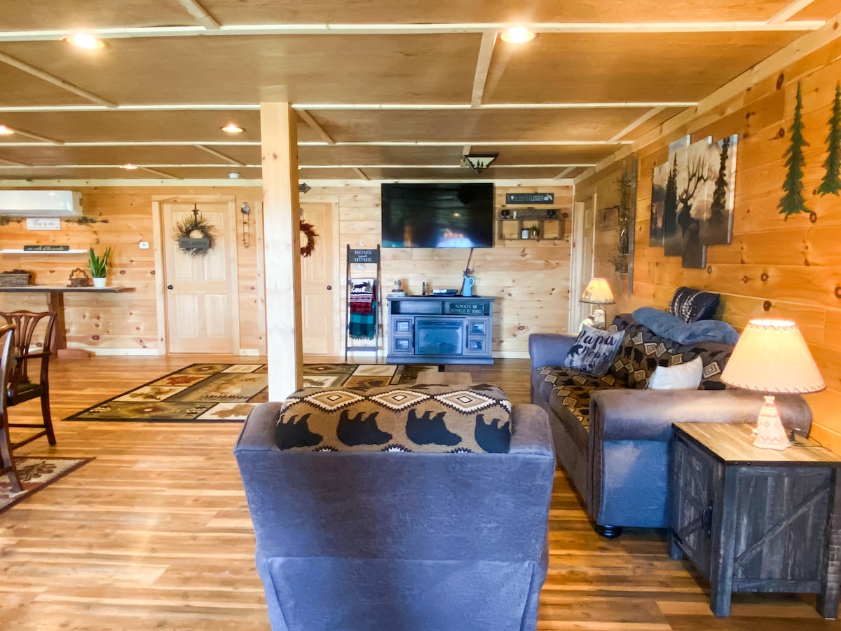 Guests will enjoy a private one bedroom apartment that is attached to our log cabin in Ticonderoga. Our central location between the lakes provides quests easy access to everything the Adirondacks have to offer. We are 1 mile from the boat launch in Lake George and 3 miles from the boat launch on Lake Champlain and historic Fort Ticonderoga. The town beach on Lake George is within 3 miles. Hiking in both NY and VT. Main street Ticonderoga is just 1/2 mile away. 18 hole golf is within 3 miles.