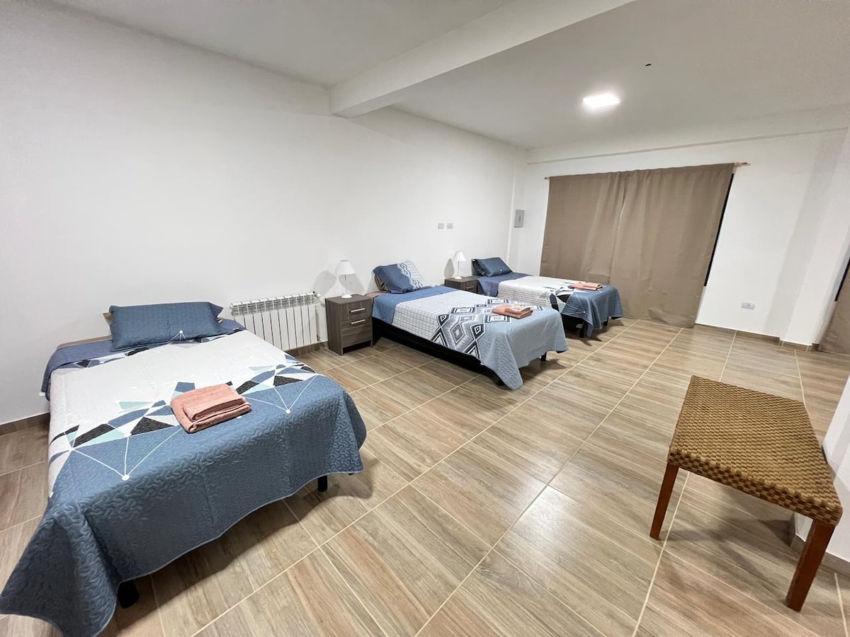 Ubicado a 200 metros de la calle San Martín (principal calle céntrica) a 400m del puerto, y en alrededores con supermercado, panaderia, transporte de pasajeros, hoteles, farmacia, etc. Aprovechá para alojarte y sentirte muy cómodo! Cuenta con agua caliente, detector de humo, de monoxido de carbono, pava electrica, microondas, cocina a gas, alacena amplia, vajilla completa, tv, wifi 6 starlink, camaras de seguridad en ingreso a edificio, y desayuno seco con bocadillos de bienvenida!