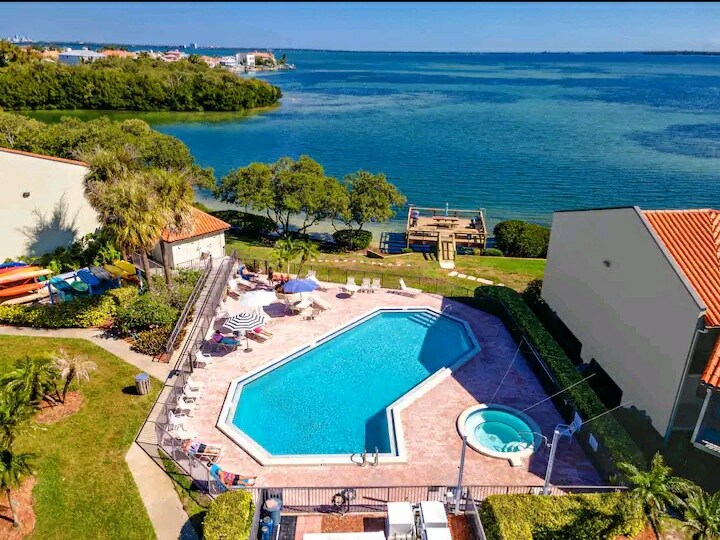 🏝 Beautiful Island of Tierra Verde 🐬 Watch Dolphins play from the balcony 🛶 Rent Kayaks 3 min away! 🏖 Fort de Soto only 2 miles away ☀️ Sparkling heated pool/hot-tub ⛴️ 6 min drive to Ferry over to Shelly Key Island Welcome to our waterfront 1 bdrm,1 bed, 1 bath, 1st floor condo (6 steps) and waterview located on the Island of Tierra Verde. Our tranquil home provides comfort and outdoor space over looking the bayside and pool. Nature lovers paradise