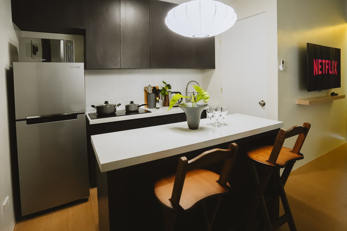A Scandinavian-inspired minimalist studio in WV Towers, designed by celebrity interior design firm Made Studios. The unit features an open-concept layout with a balcony, a fully-equipped kitchen, a comfortable double bed, & a sofa bed for more guests. Stay connected with fast WiFi up to 400Mbps, and enjoy streaming your favorite shows and movies on a Smart TV. We also provide a foldable desk & chair for remote workers. Lasltly, the building has a lovely infinity pool and gym you can enjoy!