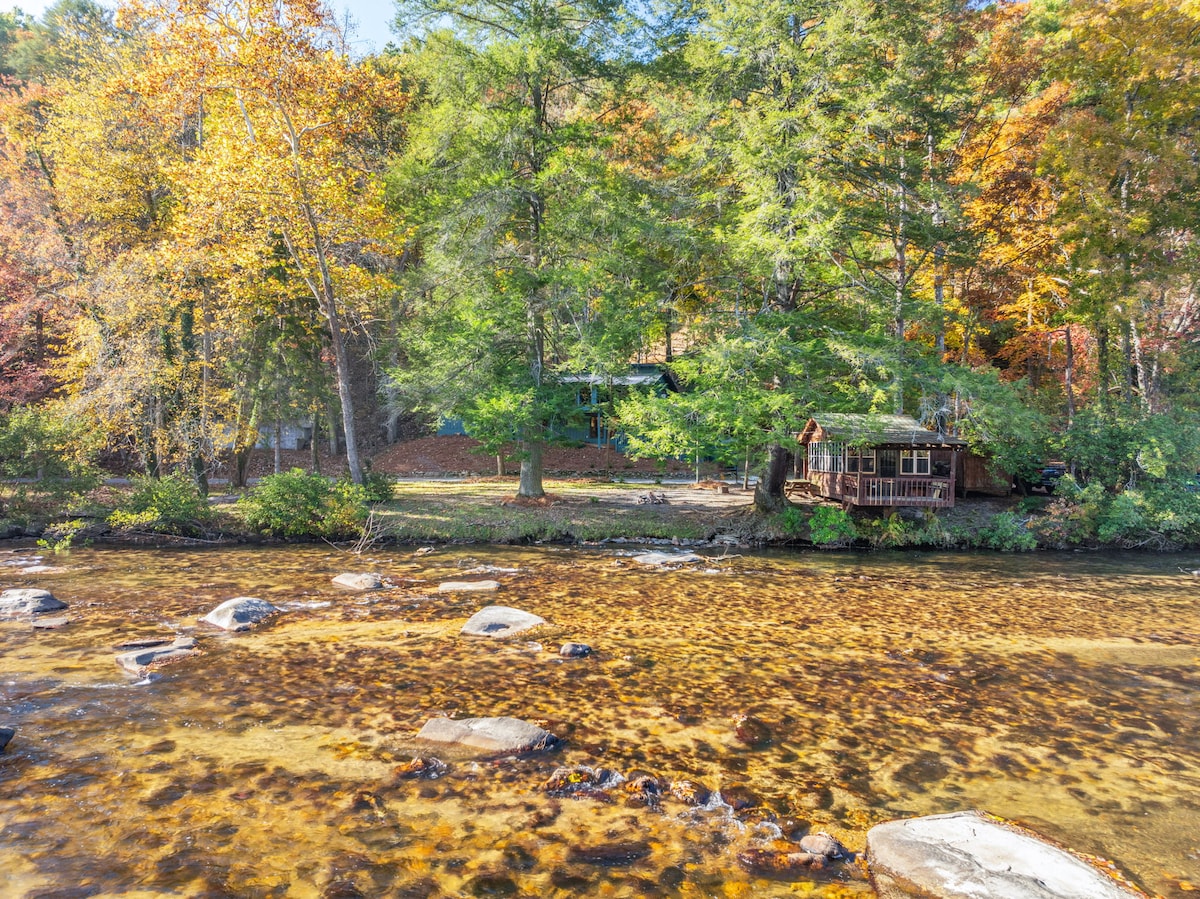 ⭐ Top 1% of Airbnb Homes “One of the best Airbnbs I’ve ever stayed in—and THE nicest in Blue Ridge.” – Scott Wake up to the sound of rushing water. Sip coffee on a swing just feet from the river. End your nights around a fire with the mountains wrapped in silence. TROUT "N" ABOUT is a premier RIVERFRONT CABIN DIRECTLY ON THE TOCCOA RIVER, designed for guests who want both PEACEFUL SECLUSION and UPSCALE COMFORT—just 8.5 MILES FROM DOWNTOWN BLUE RIDGE, with ALL PAVED ACCESS.