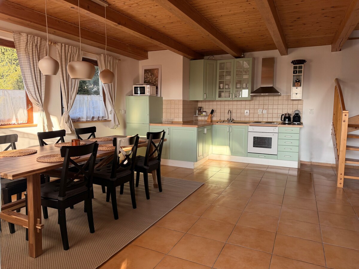 Relax in an oasis of peace on a farm in Budíškovice. A spacious, newly renovated apartment with its own fully equipped kitchen, bathroom with toilet, bedroom with four beds and a fold-out sofa will be the ideal place for you to relax in the picturesque landscape of South Bohemia. Budíškovice is located directly on the bike path and is close to beautiful historical towns such as Telč, Slavonice, or Dačice. As part of the accommodation, you can also try working with ceramics. We look forward to seeing you.