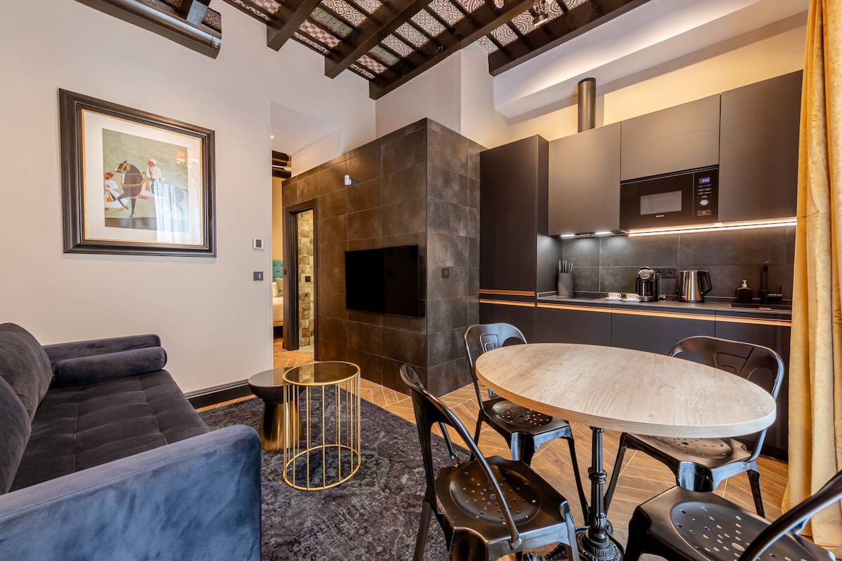 [MYLU SUITES by PUERTA CATEDRAL] One bedroom apartment ideal for families with a maximum occupancy of 2 adults + 1 child up to 18 years. Private bathroom open in bedroom. Located in our building MYLU SUITES by PUERTA CATEDRAL, a privileged environment in the heart of Seville. A few meters from the Cathedral and the Real Alcázar, the two most visited monuments in the city. Common use terrace in the building with pool.