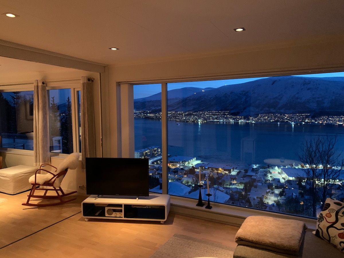 Step into the stylish and bright 1BR 1BA oasis in the heart of the picturesque and vibrant city of Tromsø. It promises a relaxing retreat just a step away from the city center, seafront, exciting attractions, and landmarks. Explore the city from our prime location before returning to the lovely apartment, whose breathtaking sea and mountain views will leave you in awe. ✔ Comfortable Bedroom ✔ Open Design Living + Sofa Bed ✔ Full Kitchen ✔ Workspace ✔ Smart TV ✔ Wi-Fi ✔ Parking See more below!